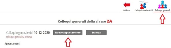Utilizzare il tasto "Nuovo appuntamento" in corrispondenza della giornata di colloquio: