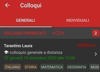 L'applicazione vi metterà in evidenza i colloqui prenotati; per partecipare al colloquio, sarà necessario selezionare il colloquio prenotato.